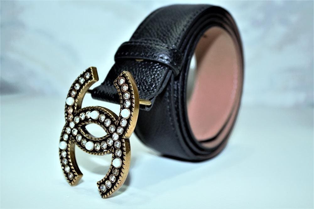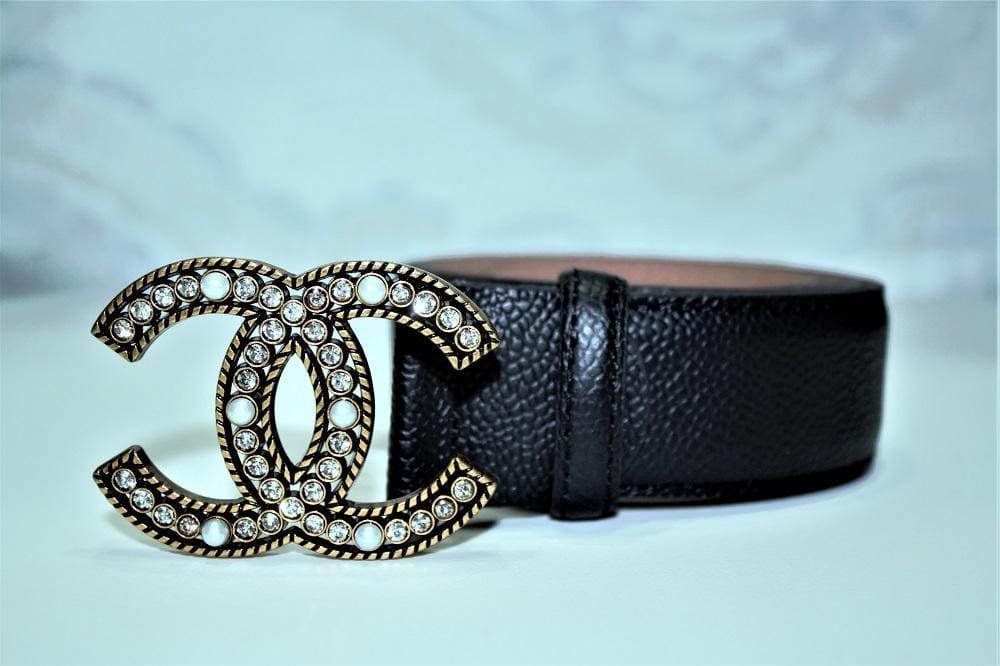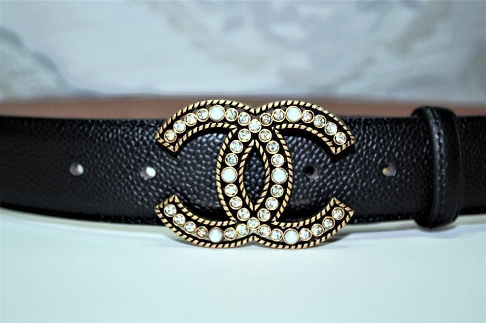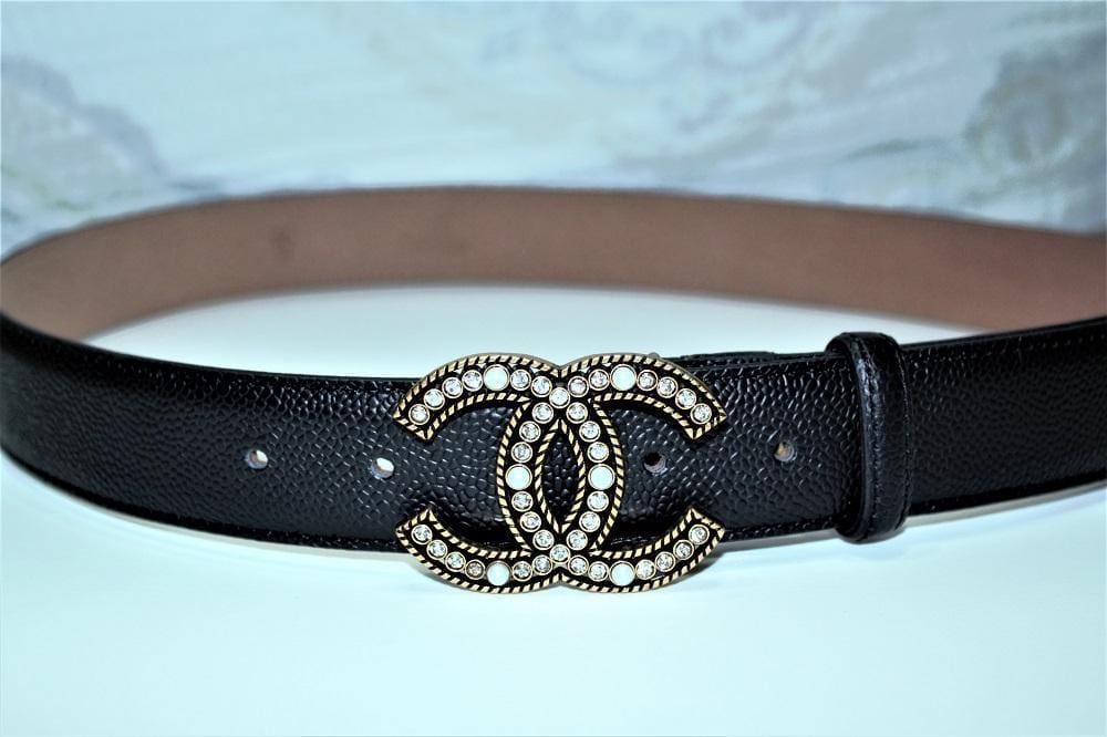 Chanel Caviar Pattern Belt Gold Diamond Buckle