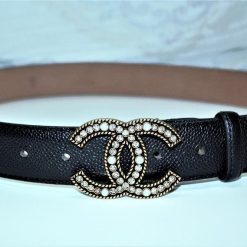 The Chanel Caviar Pattern Belt with Gold Diamond Buckle is a timeless accessory crafted from premium materials, perfect for elevating any outfit.