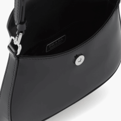 Every element of this bag is a testament to Prada’s renowned craftsmanship. The brushed leather is carefully treated to ensure durability, while the metallic hardware adds a refined contrast. Signature Prada branding, subtly placed, underscores the prestige of owning an item from one of the world’s most iconic fashion houses.