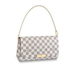 Chic and compact this white Damier Favorite MM style bag brings luxury-inspired elegance to your everyday look. Wear it crossbody or as a clutch.