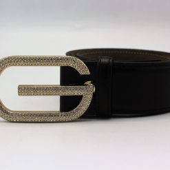 Gucci G Diamond Gold Buckle Leather Belt 40mm is a luxury designer accessory made with premium leather, featuring the iconic G buckle with pearl effect studs and gold accents.