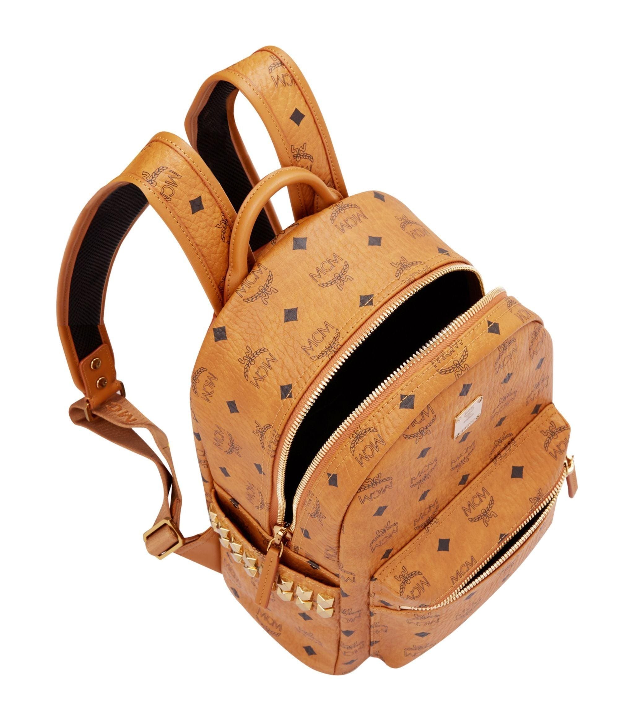 The MCM Small Stark Backpack combines luxury with practicality. Featuring the iconic Visetos monogram, this premium leather backpack is designed for everyday wear. It has adjustable straps for comfort, a spacious interior to hold all your essentials, and a front zip pocket for easy access to smaller items.
