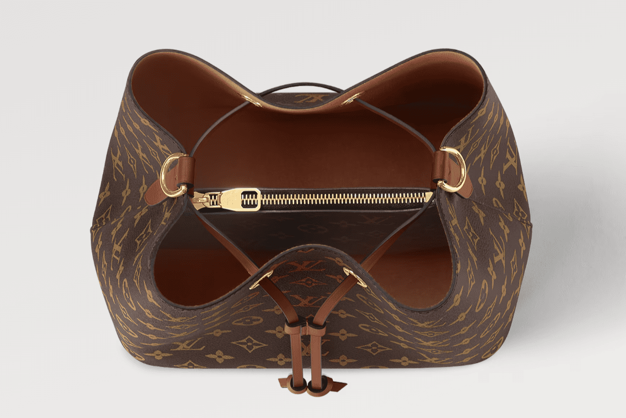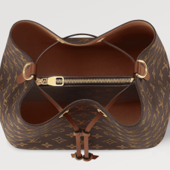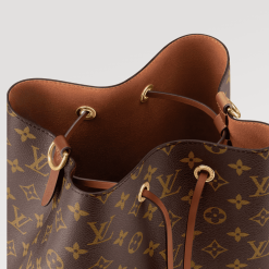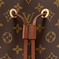 A true House icon, the NéoNoé bucket bag revisits a 1932 design by Gaston-Louis Vuitton. The original was created to transport bottles of Champagne in style; this modern version in Monogram canvas features a sleek shape, colorful leather trim and a matching bonded lining. The adjustable smart strap can be slung over the shoulder or lengthened for a trendy cross-body carry.