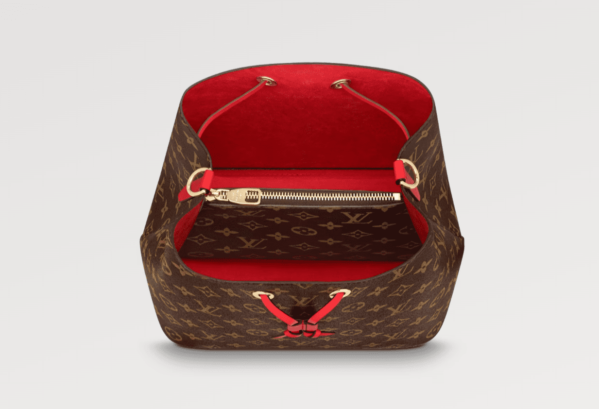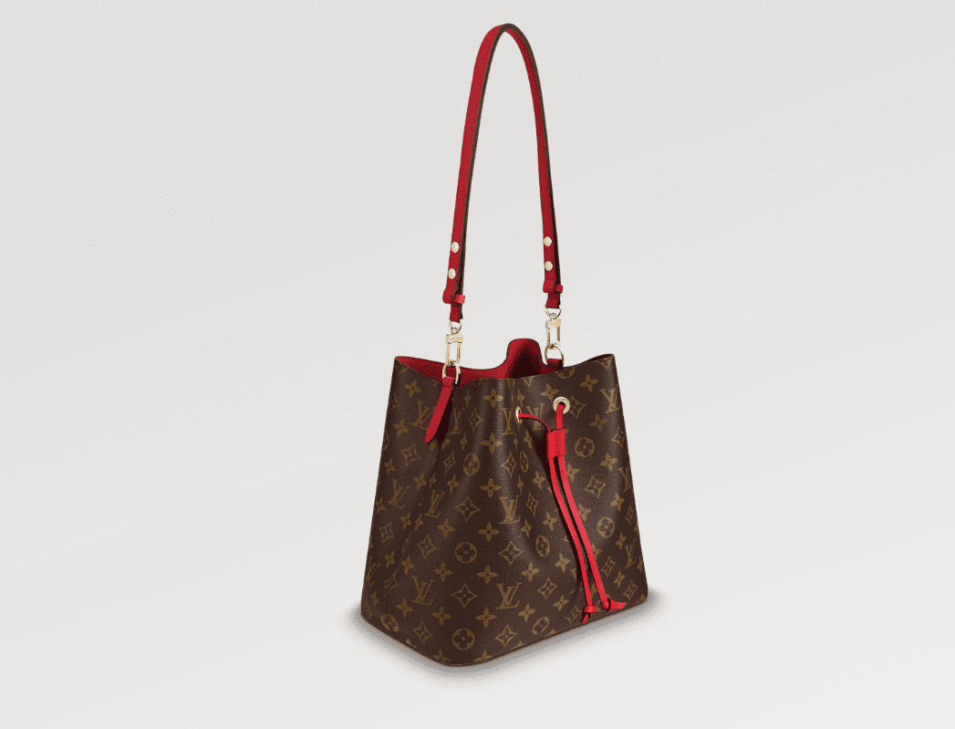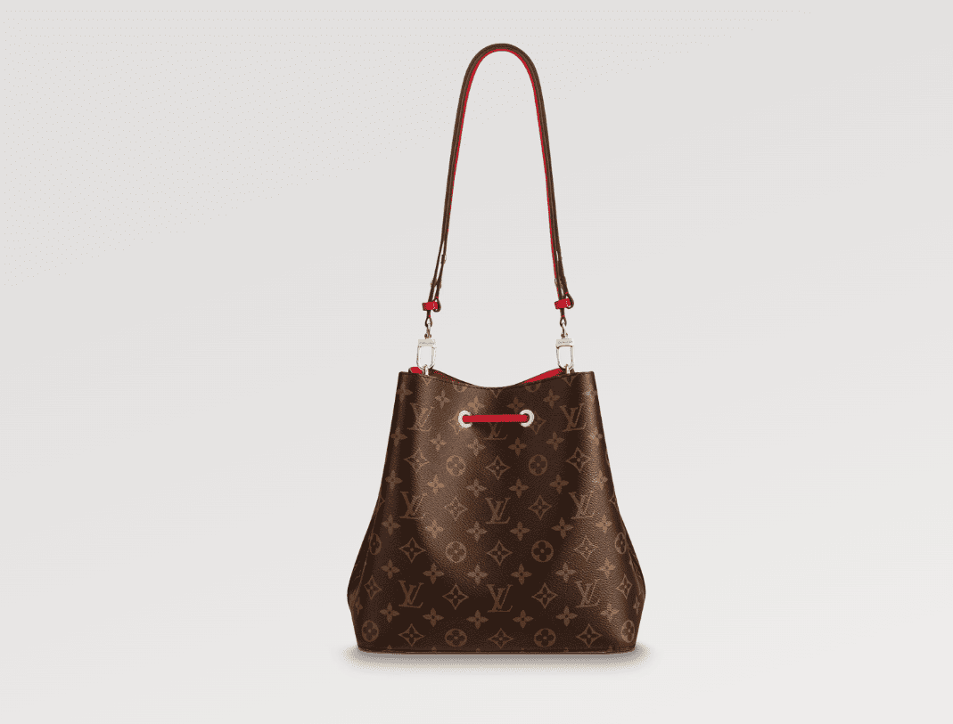 A true House icon, the NéoNoé bucket bag revisits a 1932 design by Gaston-Louis Vuitton. The original was created to transport bottles of Champagne in style; this modern version in Monogram canvas features a sleek shape, colorful leather trim and a matching bonded lining. The adjustable smart strap can be slung over the shoulder or lengthened for a trendy cross-body carry.