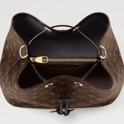 A true House icon, the NéoNoé bucket bag revisits a 1932 design by Gaston-Louis Vuitton. The original was created to transport bottles of Champagne in style; this modern version in Monogram canvas features a sleek shape, colorful leather trim and a matching bonded lining. The adjustable smart strap can be slung over the shoulder or lengthened for a trendy cross-body carry.