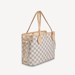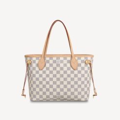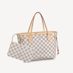 The Louis Vuitton Neverfull PM Small Damier Azur is a luxurious yet practical tote bag. Made from the iconic Damier Azur canvas with leather trim, this designer bag is perfect for both casual and formal occasions. Spacious and stylish, it is an essential accessory for any wardrobe.