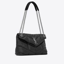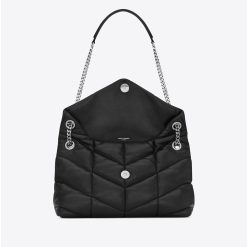 THE ICONIC LOULOU IN PUFFER VERSION, WITH CHEVRON QUILT OVERSTITCHING.