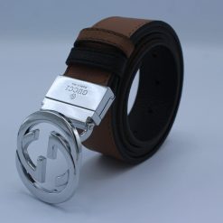 Looking for a Gucci style reversible leather belt USA? This premium dual-sided belt is crafted from genuine leather and finished with an iconic GG-style buckle. Switch between black and brown sides to match any outfit with elegance and practicality.