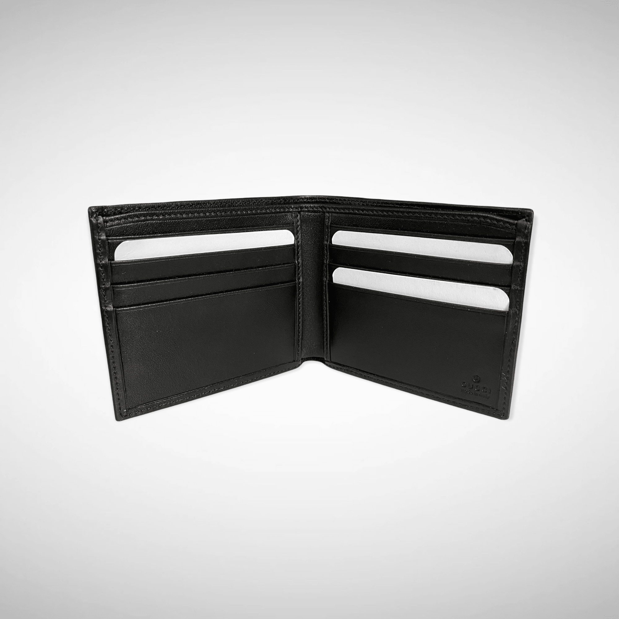 - Black Gucci Signature leather, heat debossed for a defined print with a firm texture, with black leather trims