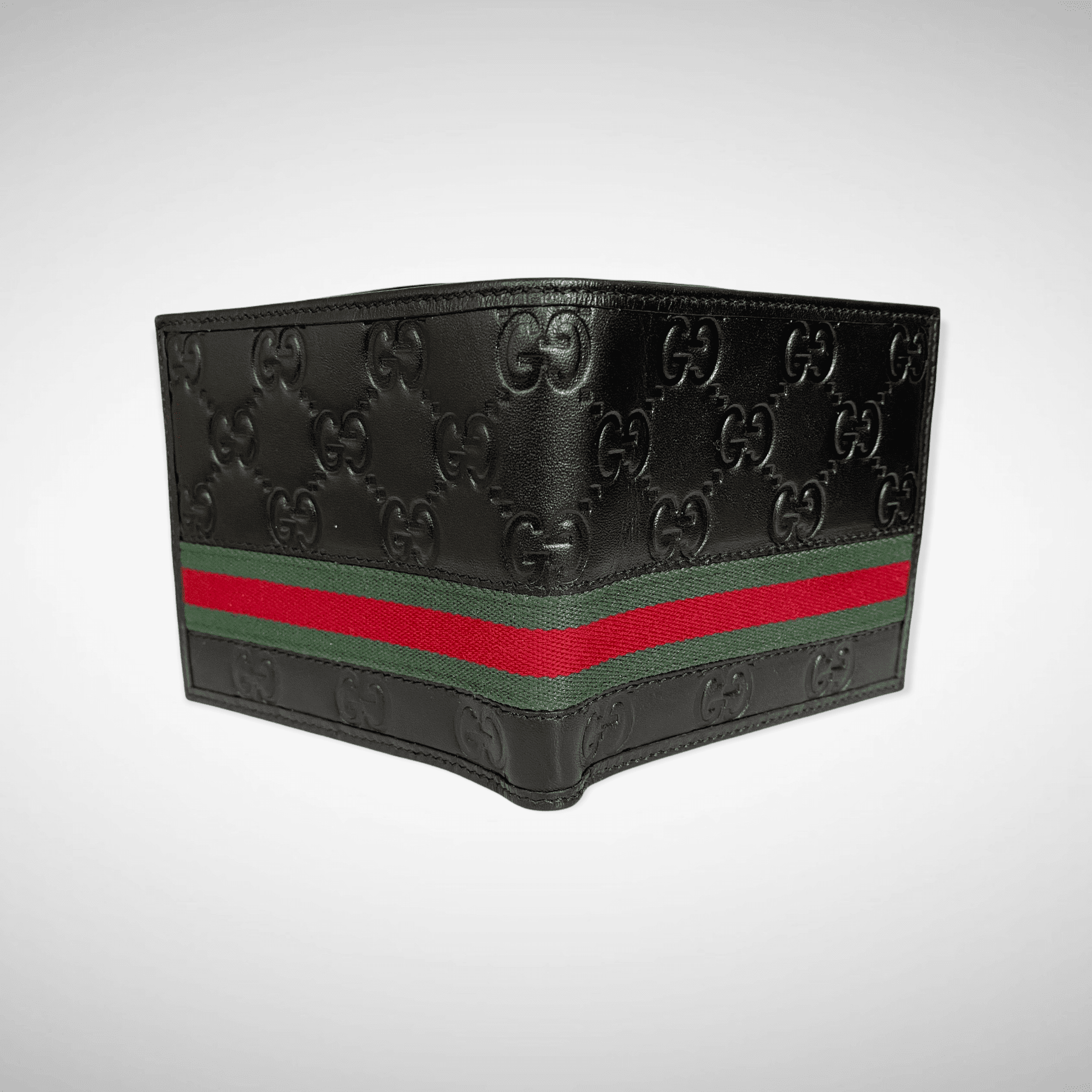 A combination of two of Gucci’s most recognisable icons: the GG motif and the Web. This bi-fold wallet is made in heat debossed Gucci Signature with Gucci Web stripe detail.