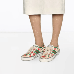 Elevate your everyday look with the Gucci Tennis 1977 Apple Print Sneakers, combining premium comfort, iconic branding, and a delightful apple motif for a unique style statement.