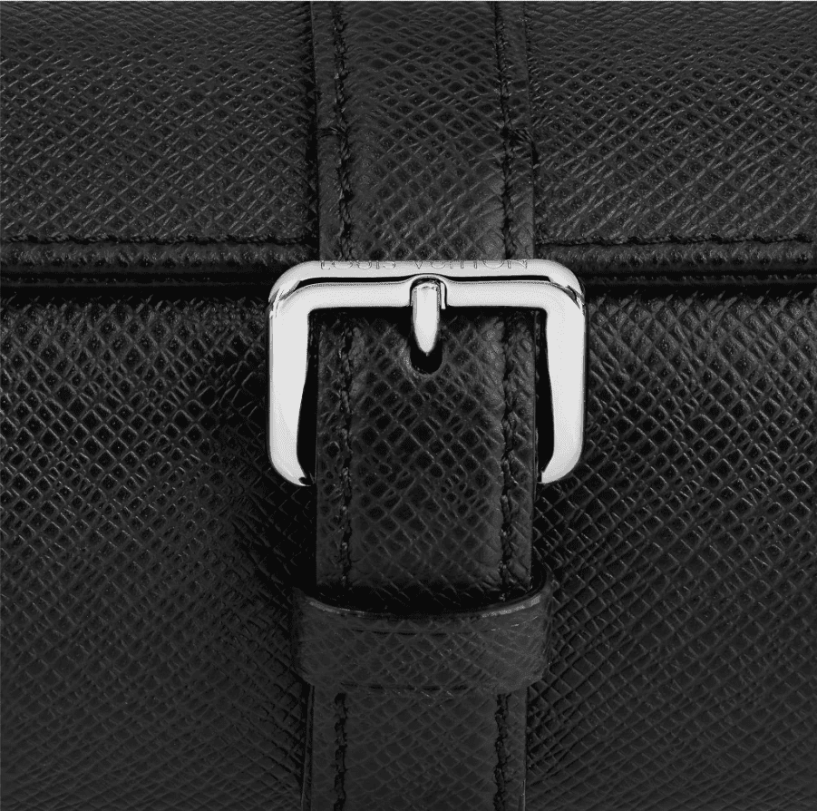 The 3 Watch Case in Taïga leather is a sophisticated travel accessory. Its luxuriously soft interior protects three timepieces, while the silver-coloured buckle provides a masculine touch.